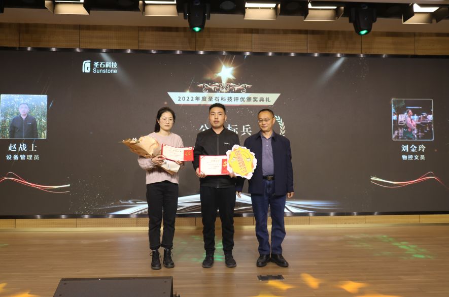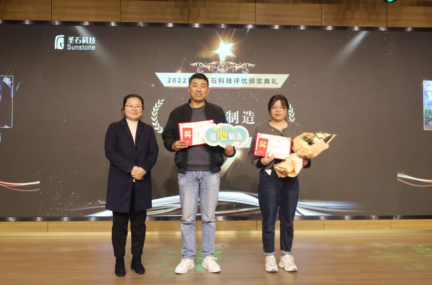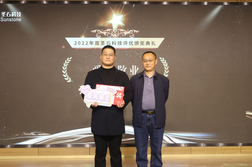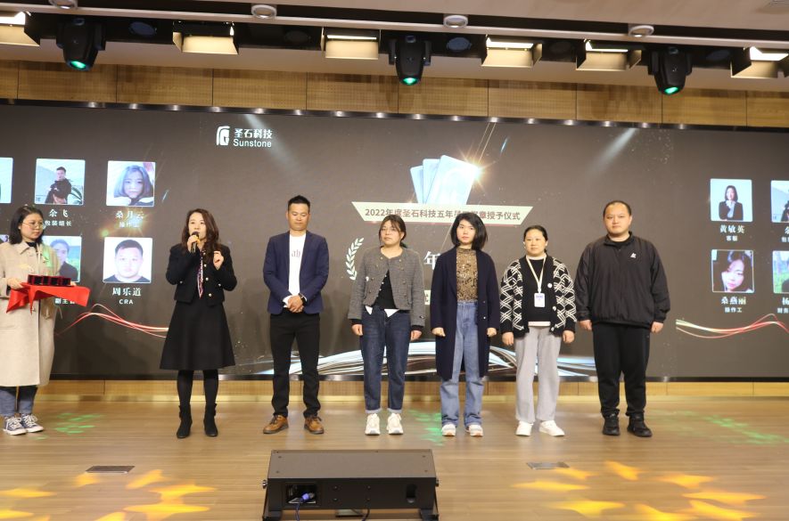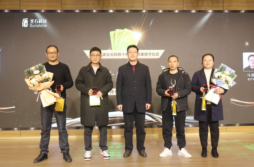 會中,總經(jīng)理石磊和副總經(jīng)理孫莎莎分別為與企業(yè)同行已滿十年及五年的老員工頒發(fā)了特別定制的金銀質(zhì)企業(yè)徽章。表彰他們一心扎根于圣石,為圣石奉獻了青春與年華,貢獻了智慧和力量。五年與十年的堅守,不僅是他們對事業(yè)的熱愛,更是他們對圣石的認可!